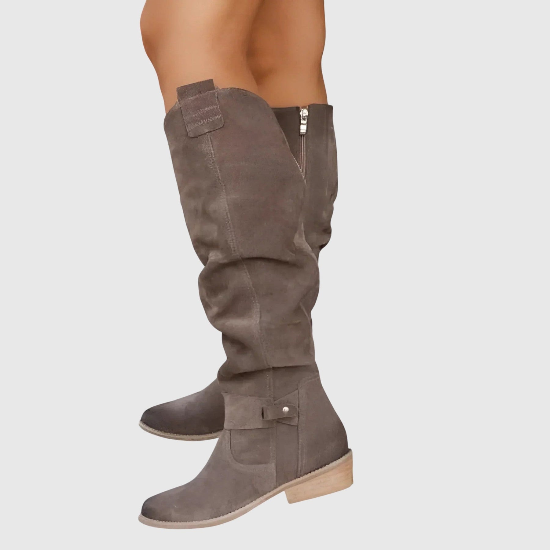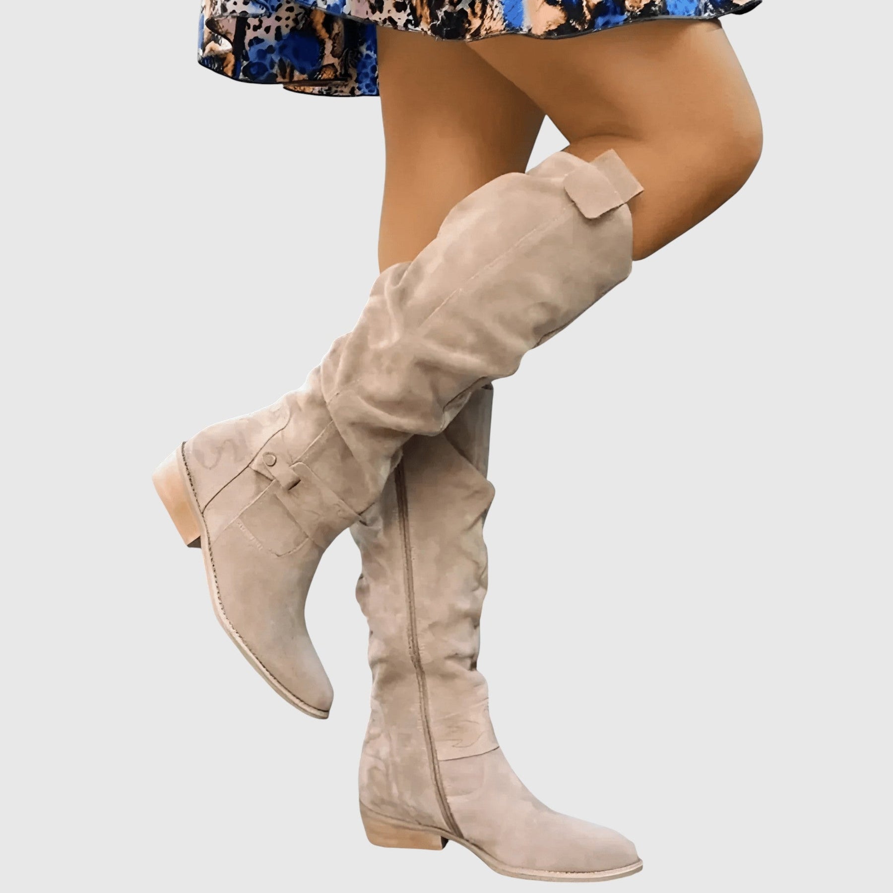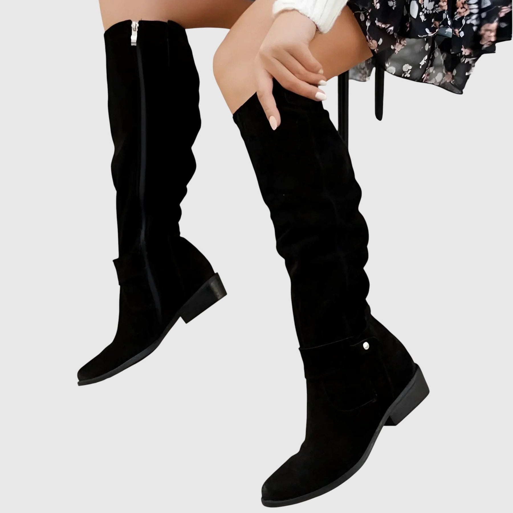 Vysoké kozačky se „slouch“ designem, kulatou špičkou a nízkým stabilním podpatkem. Snadno se obouvají bez komplikovaného zapínání, měkký poddajný svršek se přirozeně přizpůsobí lýtku. Svislé švy opticky prodlužují siluetu. Skvěle ladí k šatům, sukním i džínům — od běžného dne po ležérně elegantní outfity.