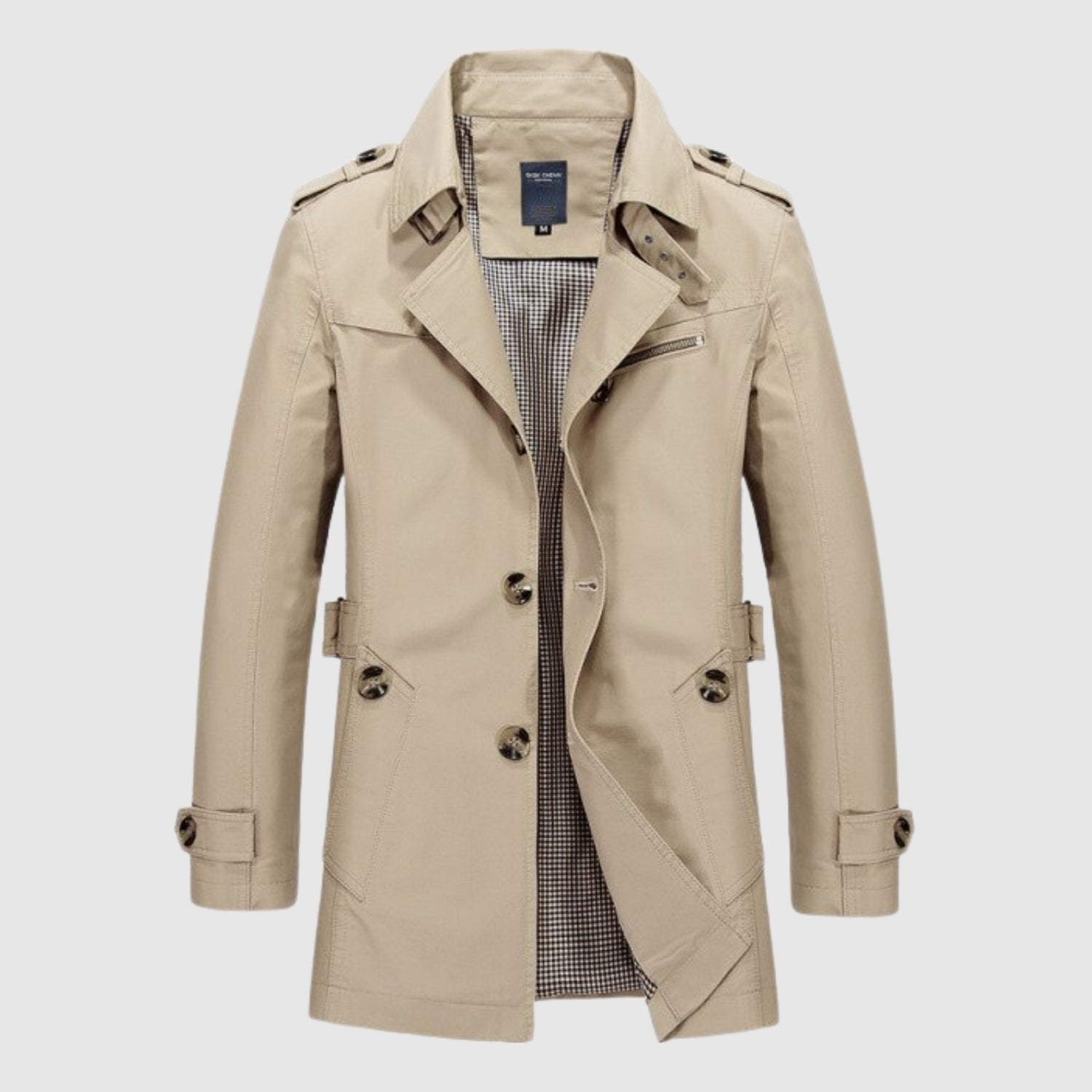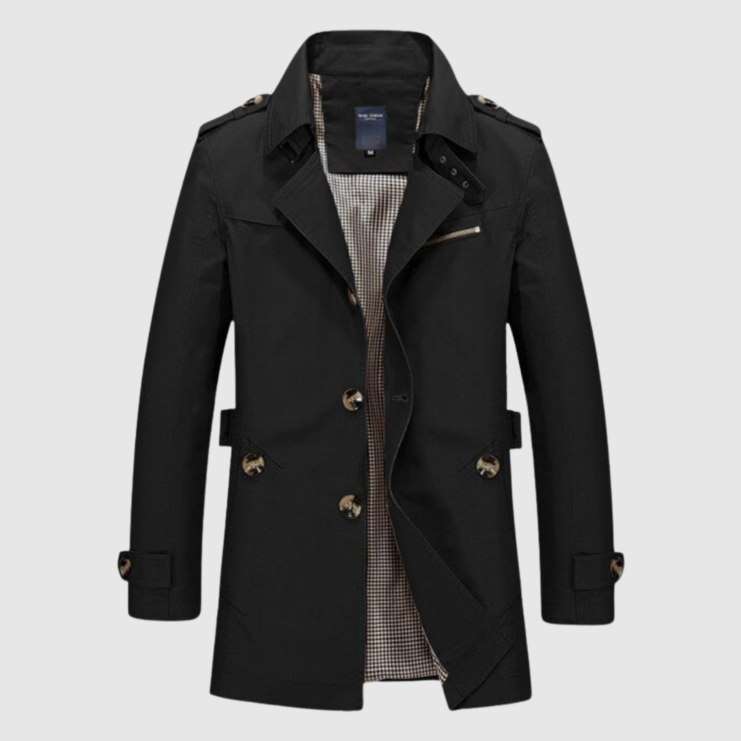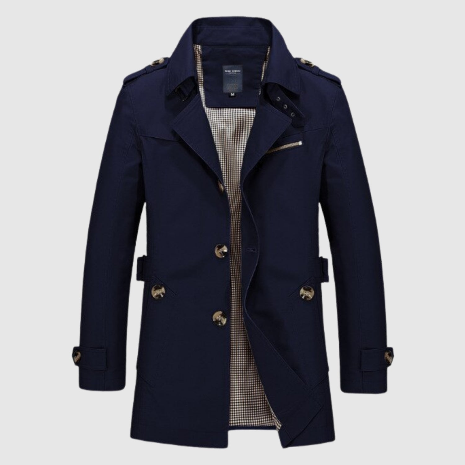 Tento dlouhý kabát kombinuje sofistikovanost vintage designu s moderní funkčností. Jeho strukturovaný střih zdůrazňuje mužskou siluetu, zatímco podšívka zaručuje pohodlí a teplo v chladnějších dnech. Ideální pro každou příležitost, od formálních setkání po procházky městem.