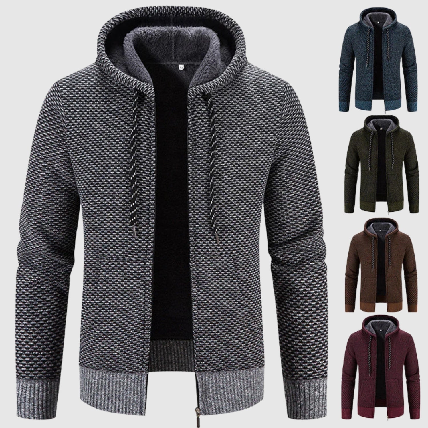 Tento svetr kombinuje teplo kabátu s pohodlím mikiny. Jeho silná a měkká tkanina poskytuje účinnou izolaci proti chladu, zatímco design s kapucí a zipem z něj dělá univerzální a moderní kousek. Ideální pro každodenní nošení, aniž by ztratil na eleganci a teple.