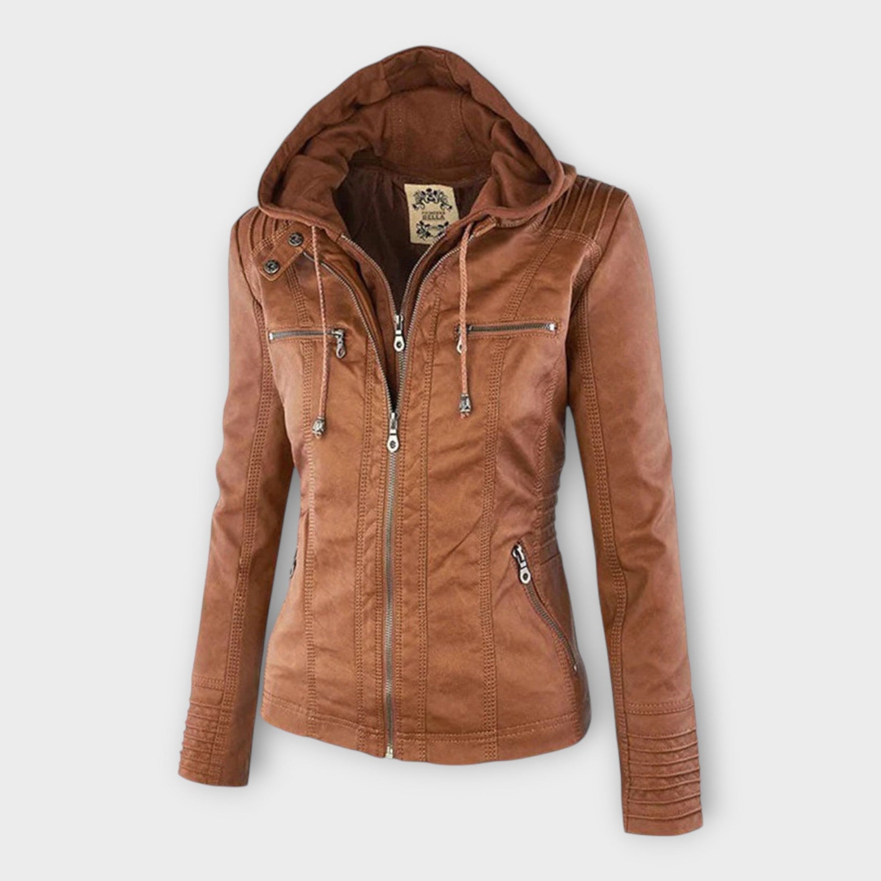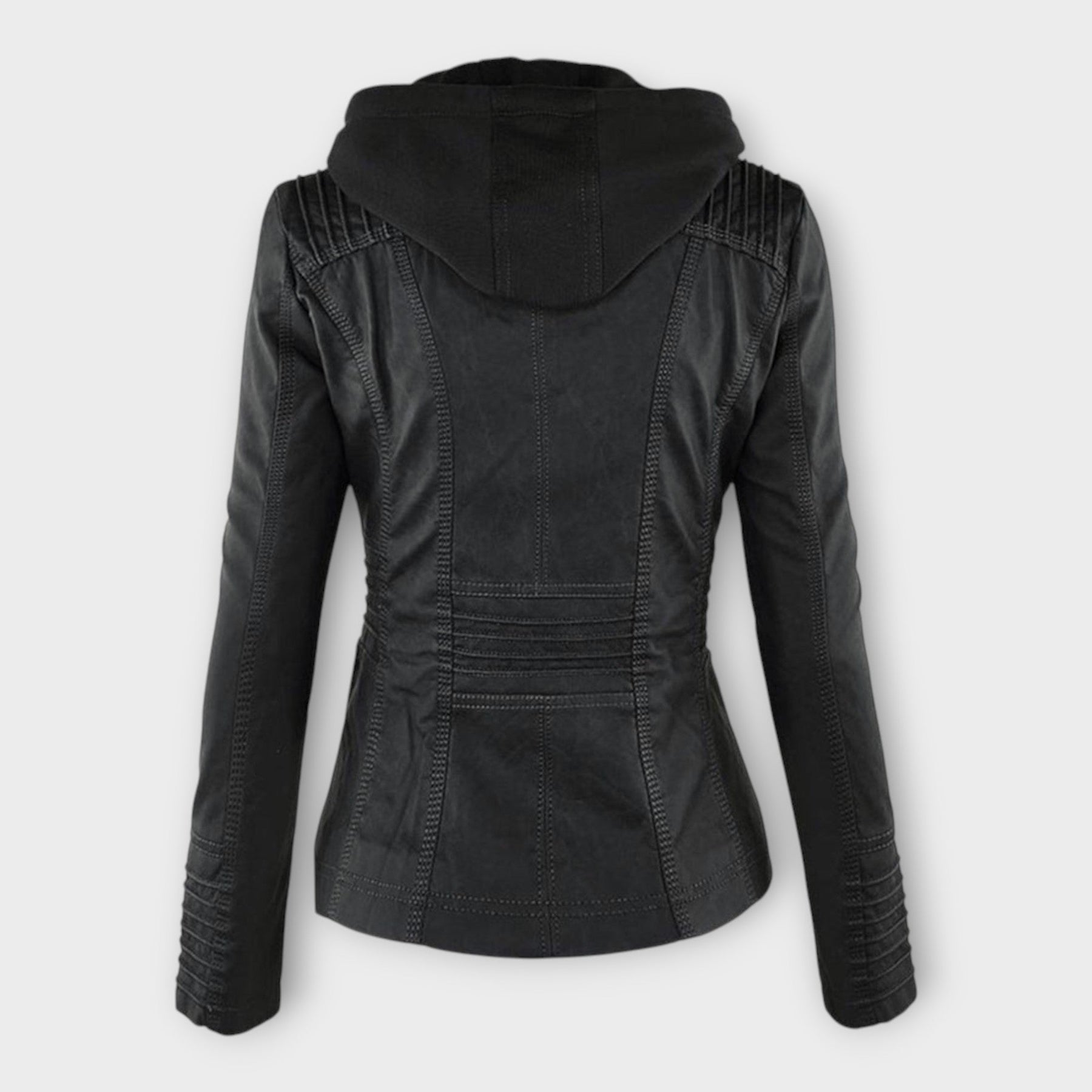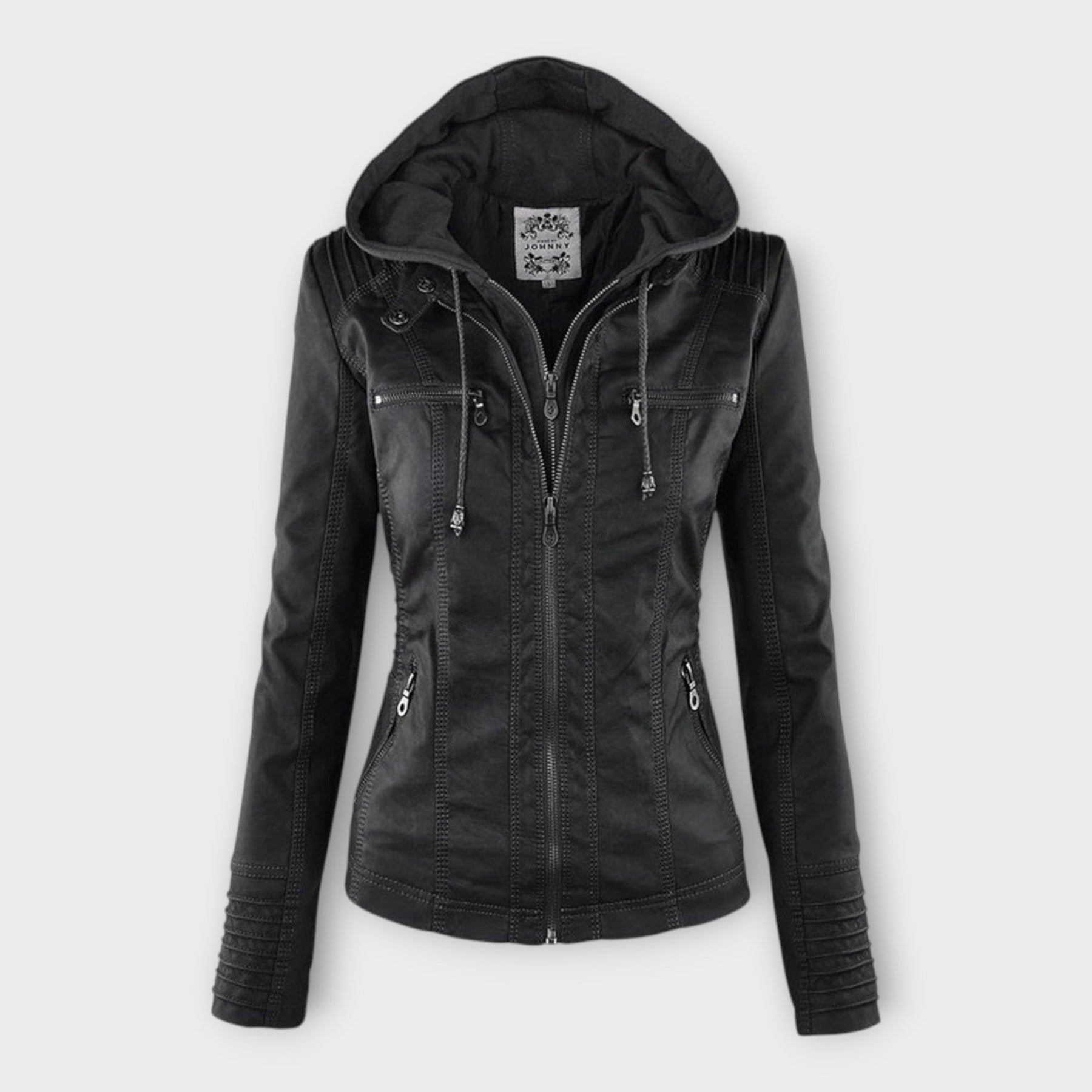 Moderní kožená bunda s kapucí a nadčasovým střihem