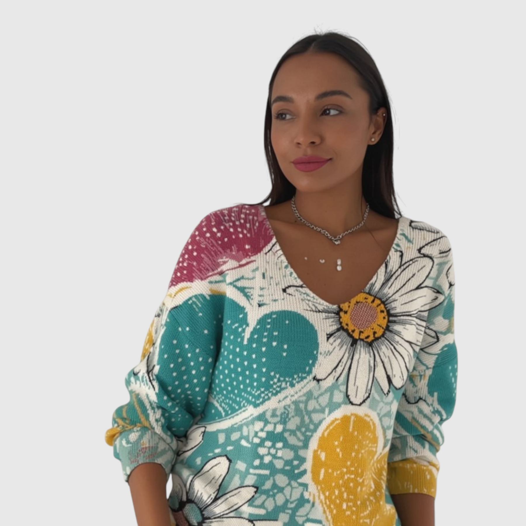 Pulovr s V-výstřihem, měkký a pohodlný.