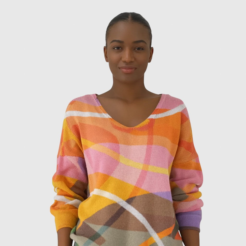 Objevte komfort a nadčasový styl s tímto lehkým pleteným svetrem. Ideální pro každodenní nošení, nabízí pohodlnou siluetu, elegantní výstřih do V a decentní vzor, který se hodí ke každému outfitu. Nezbytný základ pro každý šatník. Vyrobeno z vysoce kvalitního materiálu, který zajišťuje měkkost, pružnost a lichotivý střih.