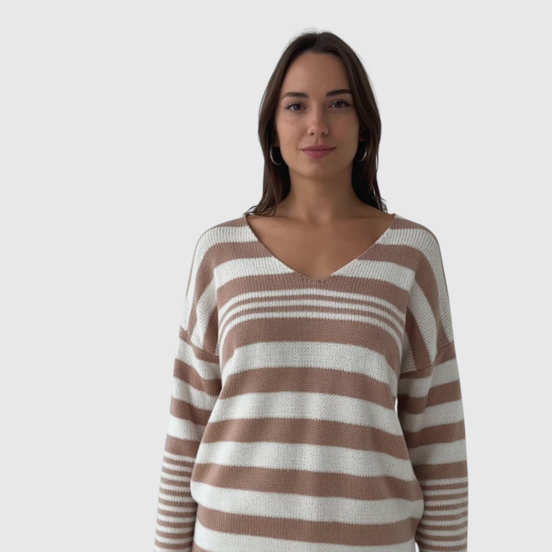 Zažijte pohodlí a nadčasový styl s tímto svetrem. Ideální pro každodenní nošení a relaxaci – tento lehký pletený kousek se vyznačuje pohodlným střihem, elegantním výstřihem do V a decentním vzorem. Nezbytný kousek pro každý šatník.