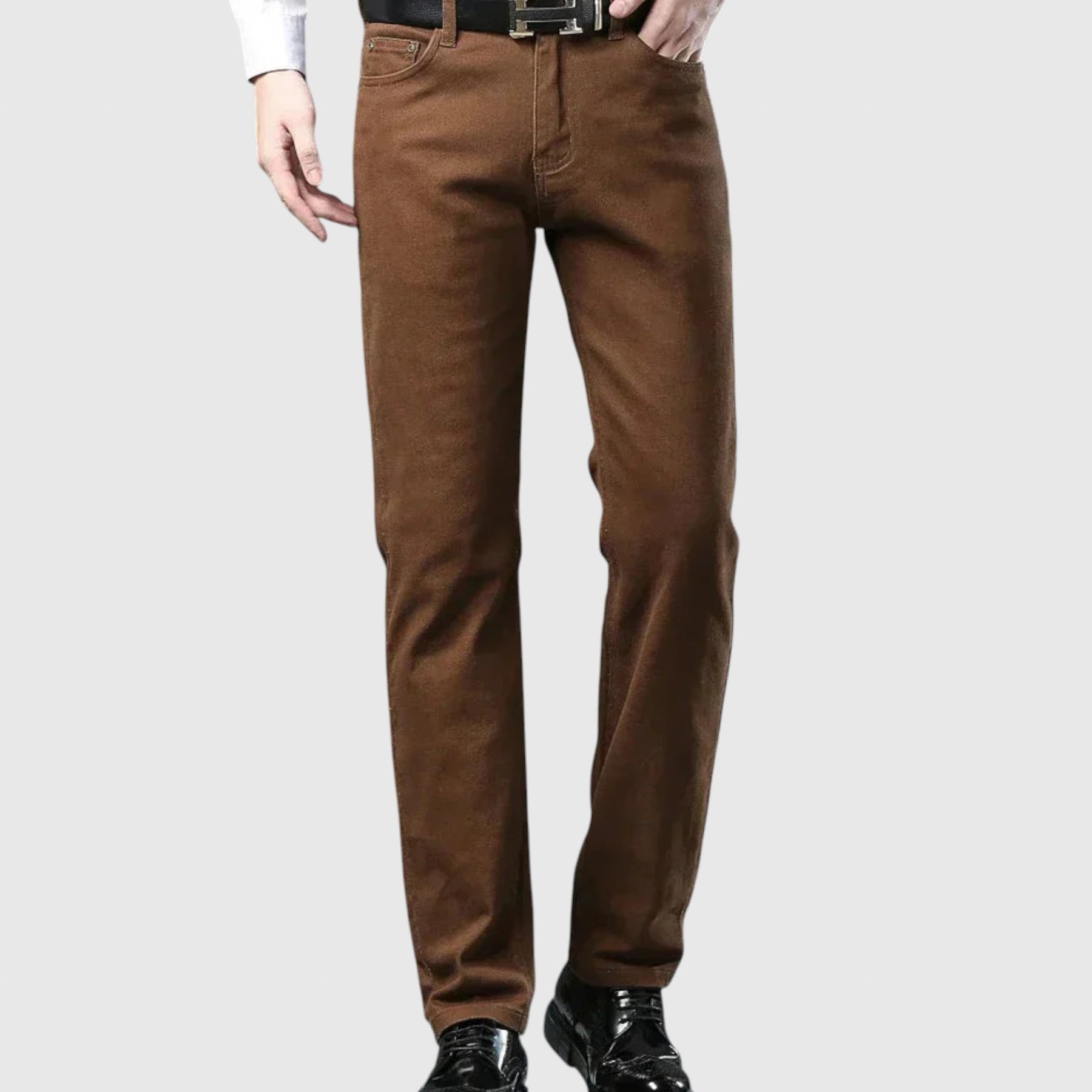 Džíny Elegant Cotton jsou určeny pro muže, kteří si cení nadčasového designu s vynikajícím komfortem. Vyrobeny z vysoce kvalitní bavlny, nabízejí prodyšný dotek a přizpůsobený střih - ideální pro neformální dny, smart-casual vzhled nebo elegantní večery.
