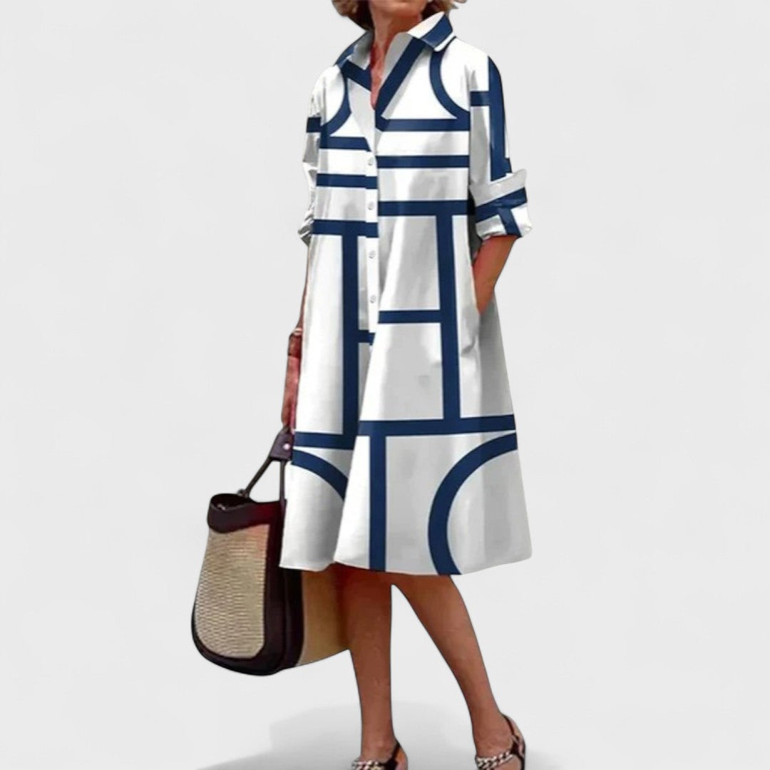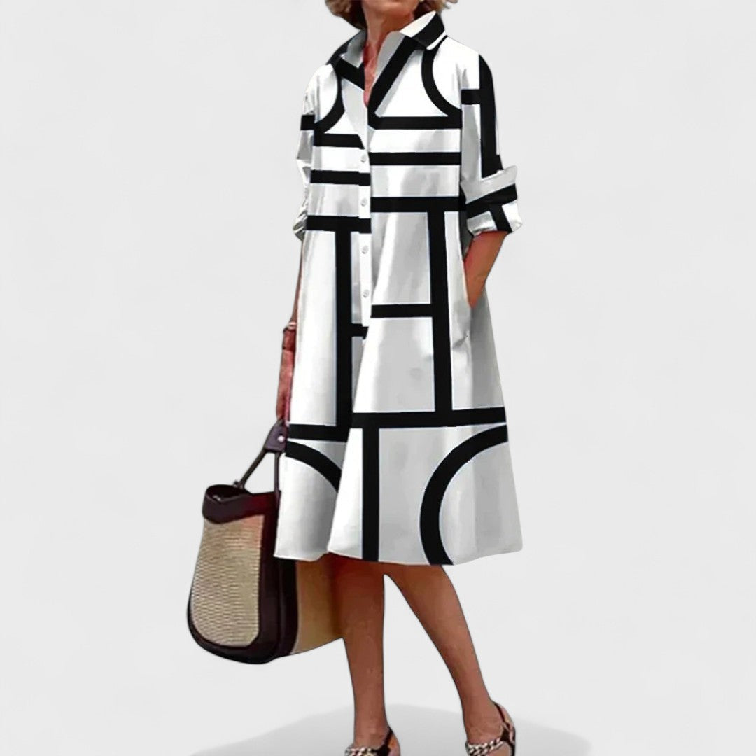 Šaty Stella zaujmou výrazným geometrickým vzorem v čistých liniích a sofistikovaném střihu. Jemný výstřih a ladně definovaný pas dávají vyniknout ženským křivkám, zatímco splývavá sukně se podehrává při chůzi – vytvoří tak krásný efekt pohybu. Vhodné jak do kanceláře, tak na stylovou večeři nebo umělecký večírek.