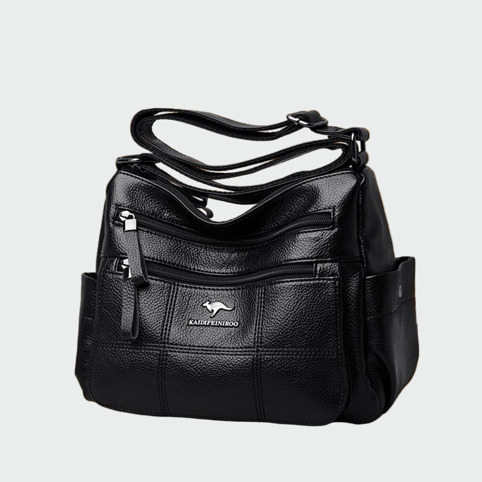 Praktická taška přes rameno v černé barvě s klasickým a funkčním designem. Disponuje několika vnějšími kapsami se zipem, které nabízejí pohodlí při organizaci a okamžitý přístup k nezbytnostem. Její odolný materiál a robustní ucha zajišťují každodenní trvanlivost, zatímco minimalistický charakter se hodí k jakémukoli vzhledu. Ideální volba pro ty, kteří hledají styl a praktičnost v jedné tašce.
