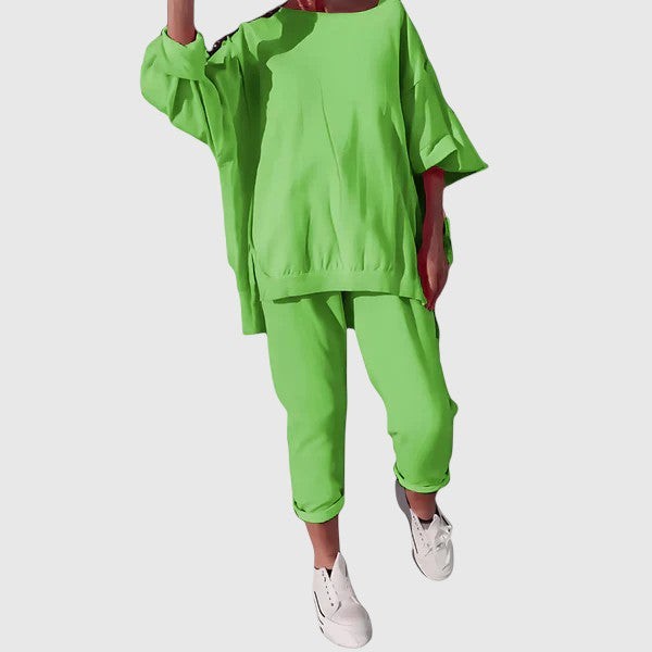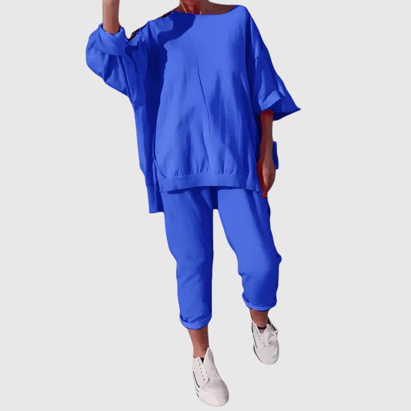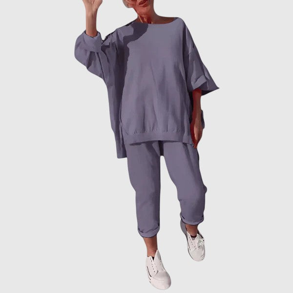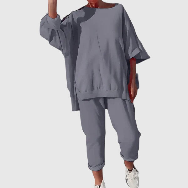 Dopřejte si pohodlí a styl s domácí soupravou Gianna. Tento volný střih a moderní design vám zajistí maximální komfort při každodenním nošení doma i během volného času.