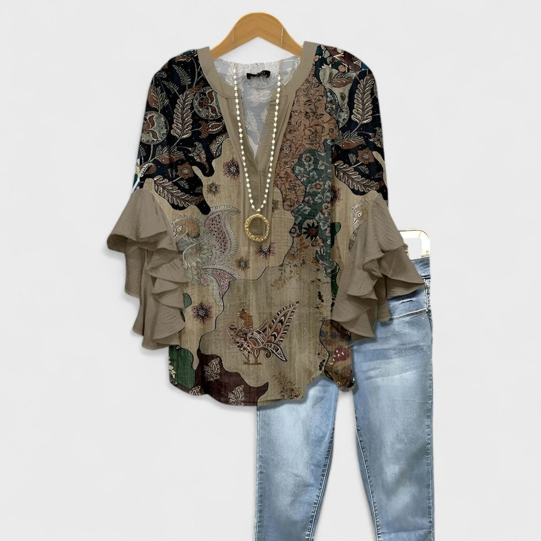 Blůza Elisabet je ideální volbou pro ty, kteří hledají styl a pohodlí v jednom. Je vyrobena z lehkého a prodyšného materiálu, který se skvěle hodí na letní dny. Volný střih a jemné detaily u výstřihu vytvářejí ženský a uvolněný vzhled, který je ideální pro každodenní nošení.