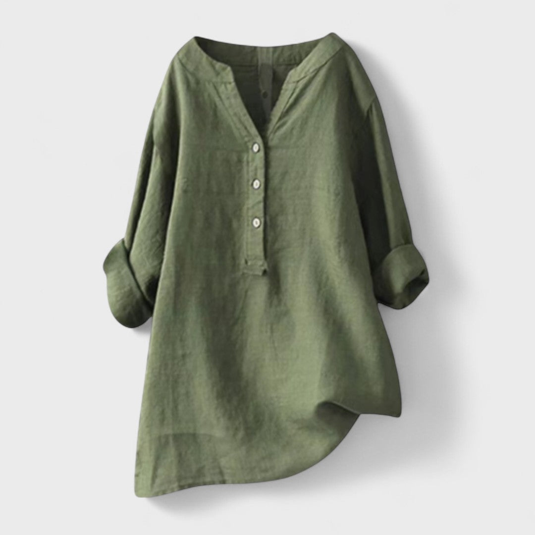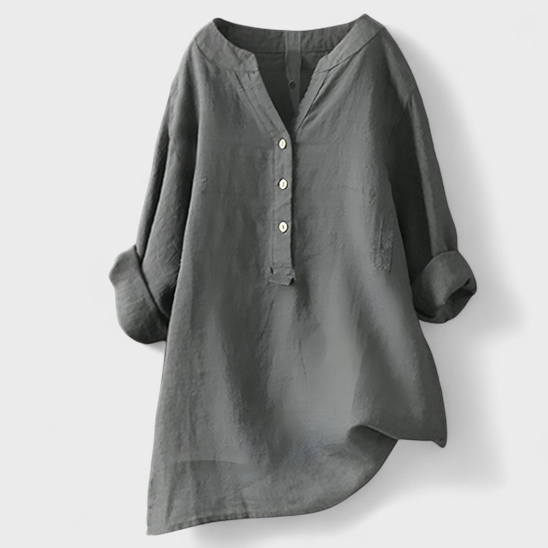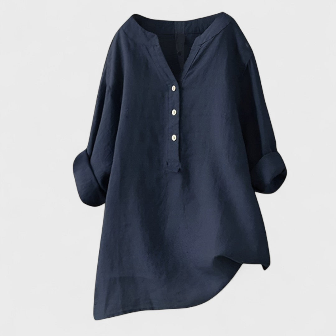 Košile Freja je nepostradatelný kousek pro dny, kdy chcete vypadat upraveně, ale cítit se volně. Vyrobena z lehkého, prodyšného materiálu, který ti umožní dýchat i za horkého počasí. Klasické knoflíkové zapínání a decentní límeček dodávají nadčasový vzhled, zatímco volný střih s mírně prodlouženou délkou lichotí postavě a poskytuje skvělý základ pro vrstvení.