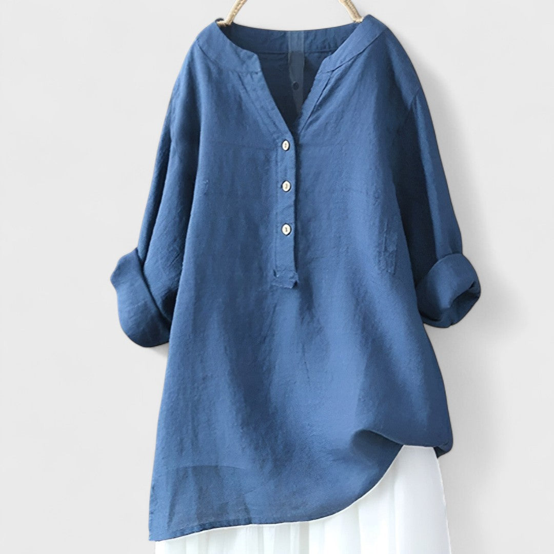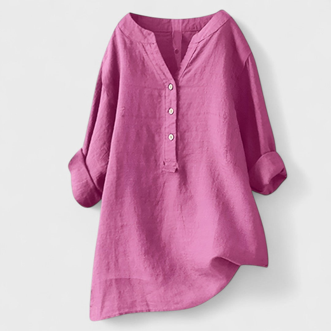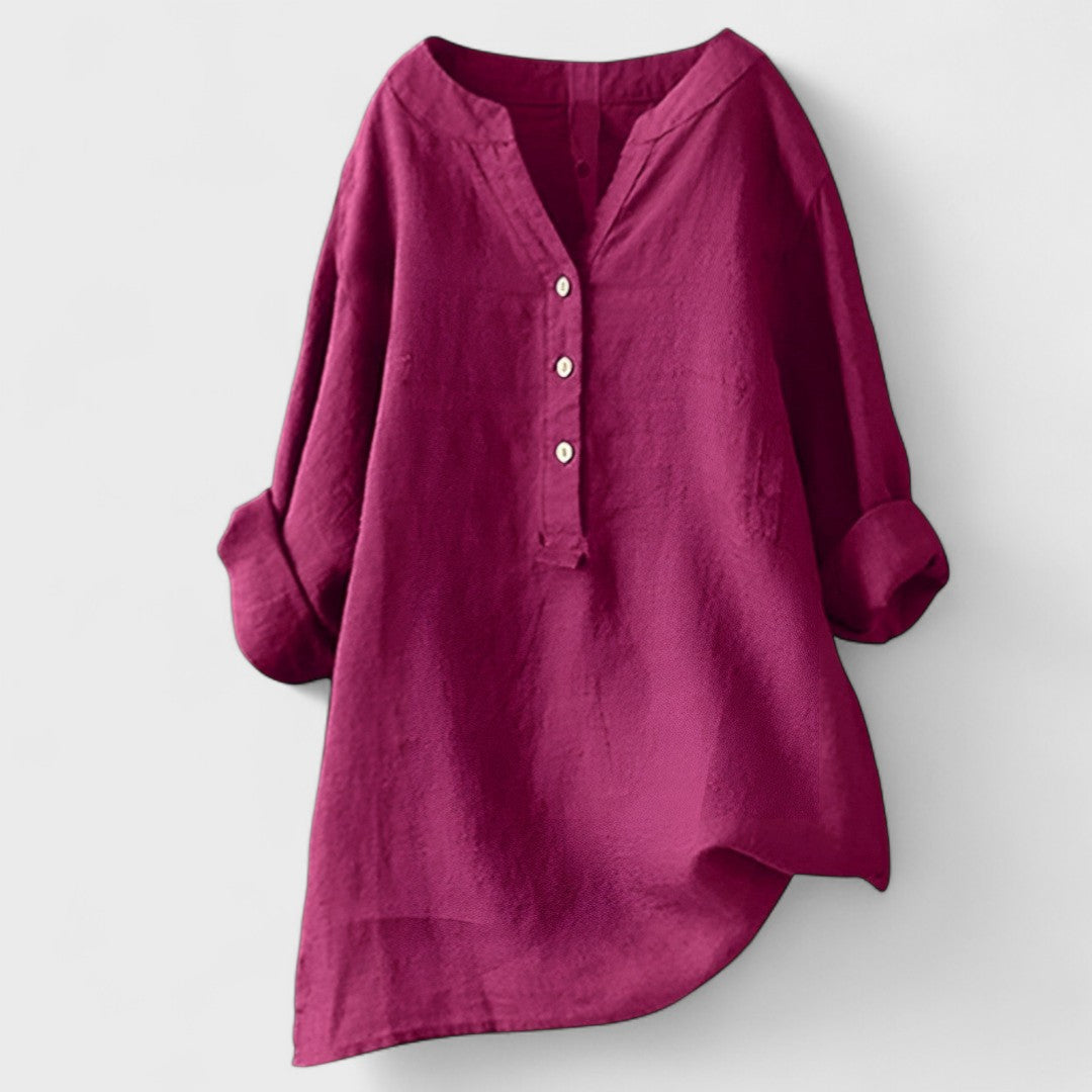 Košile Freja je nepostradatelný kousek pro dny, kdy chcete vypadat upraveně, ale cítit se volně. Vyrobena z lehkého, prodyšného materiálu, který ti umožní dýchat i za horkého počasí. Klasické knoflíkové zapínání a decentní límeček dodávají nadčasový vzhled, zatímco volný střih s mírně prodlouženou délkou lichotí postavě a poskytuje skvělý základ pro vrstvení.