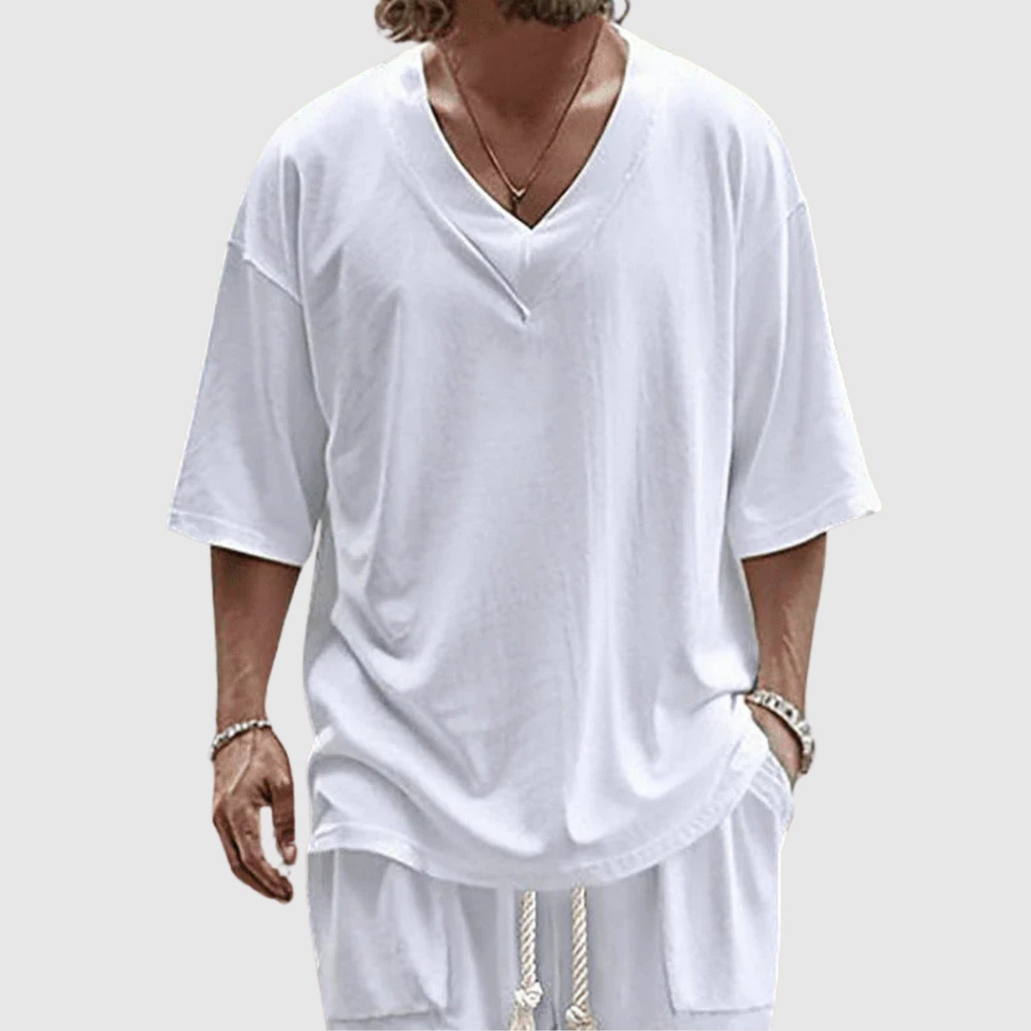 Tento pánský set přináší nový rozměr pohodlí a uvolněnému stylu. Díky plynulému a modernímu designu je tento set ideální pro klidné dny, cestování nebo prostě pro relaxaci, aniž byste ztratili svůj osobní styl. Jeho volný střih přináší svěžest a volnost a podtrhuje váš moderní a bezstarostný životní styl.